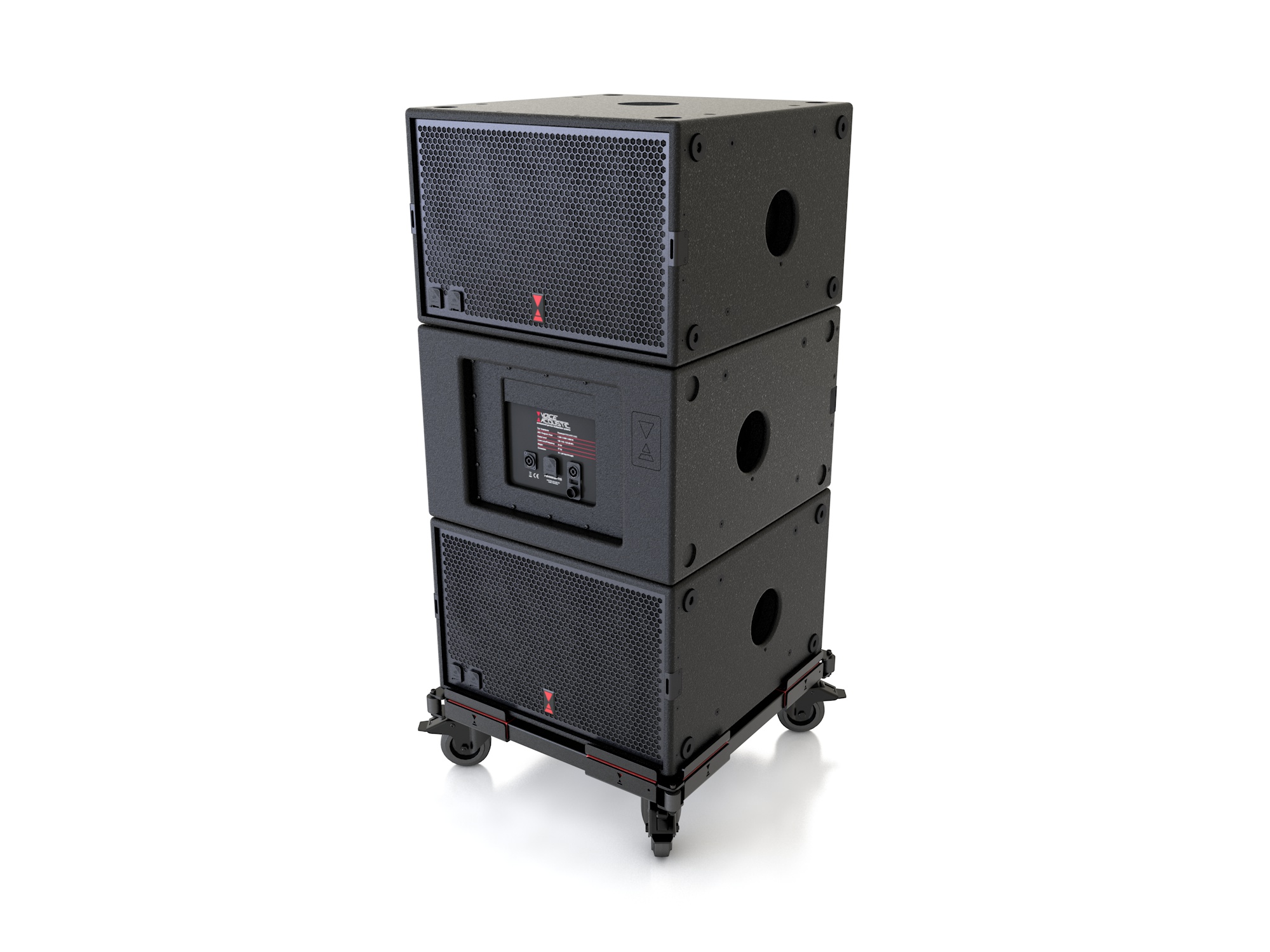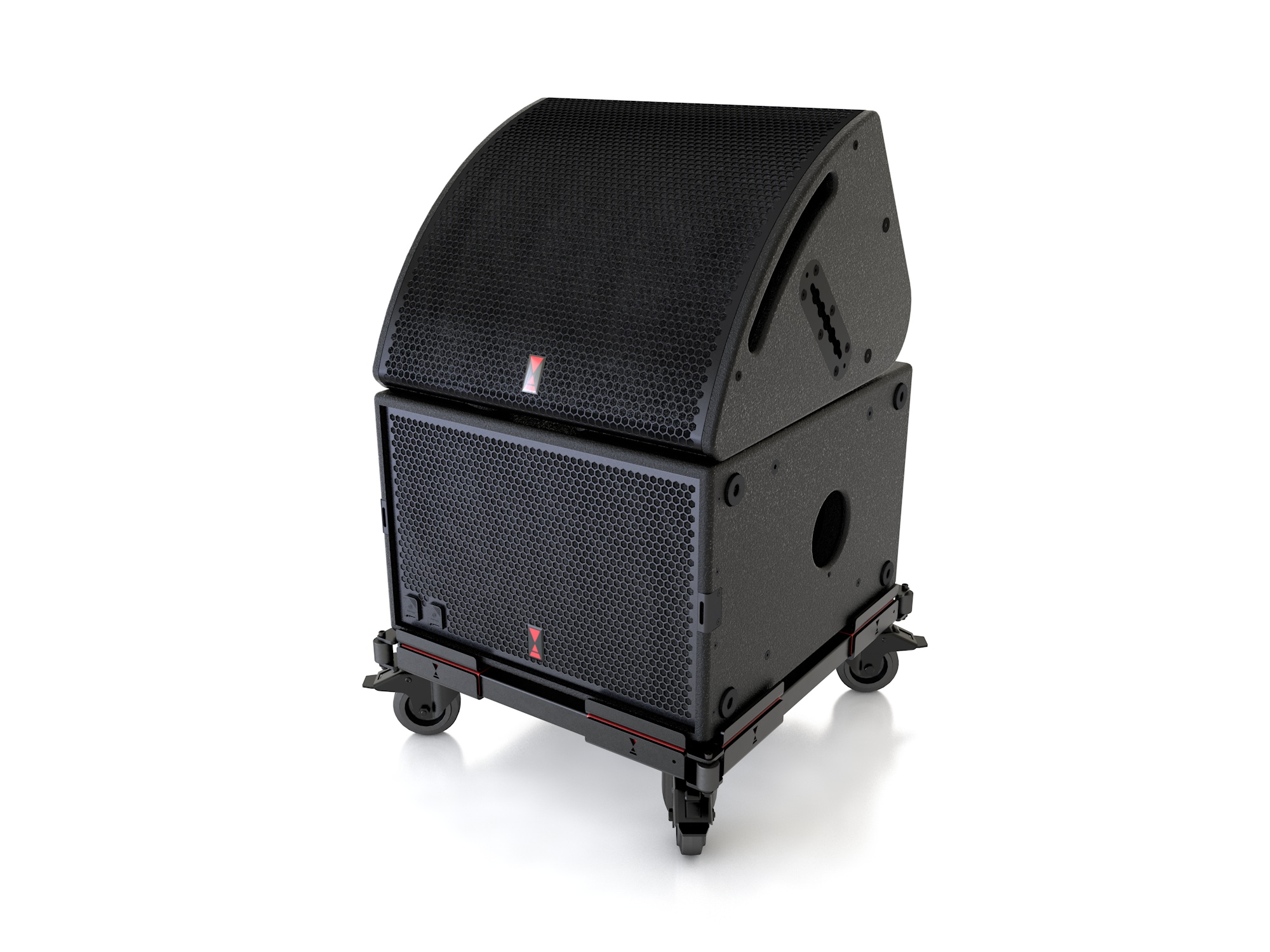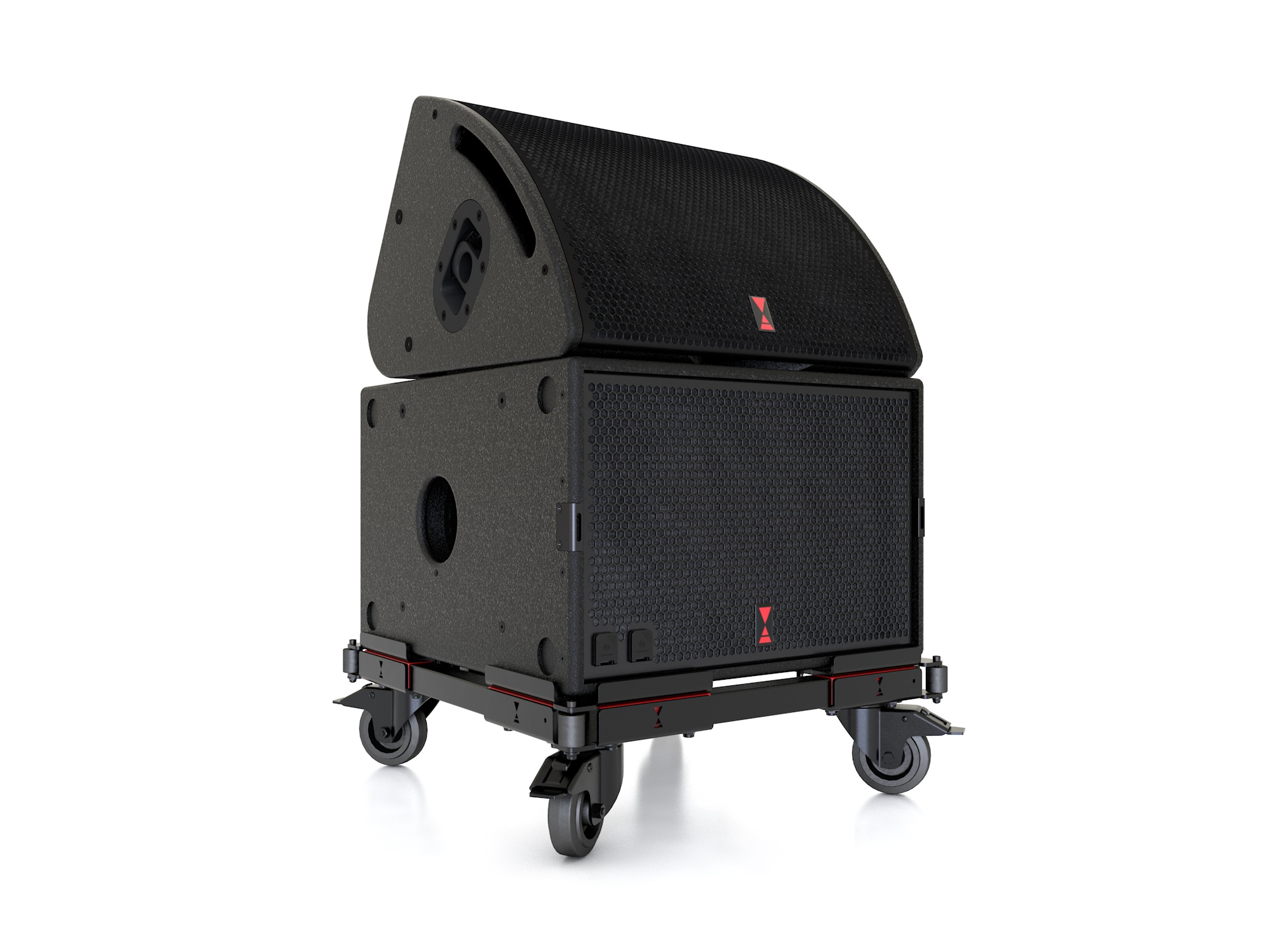 Rolldolly Paveosub-115 vertikal, für bis zu 4 x aufeineinder gestackte Subs, 4 x gebremste 100 x 36 mm Black Wheels. In den Ecken lassen sich optionale Steckfüße einschieben und in der Tiefe und Höhe einstellen, um z.B. eine Groundstack-PA zu stabilisieren und auf unebenen Boden zu nivelieren. Auch ideal nutzbar als Bühnenwagen für schnelle Umpositionierung von EDM/Drum-Monitoring mit einem Paveosub-115 und CXN-12/16 darauf.