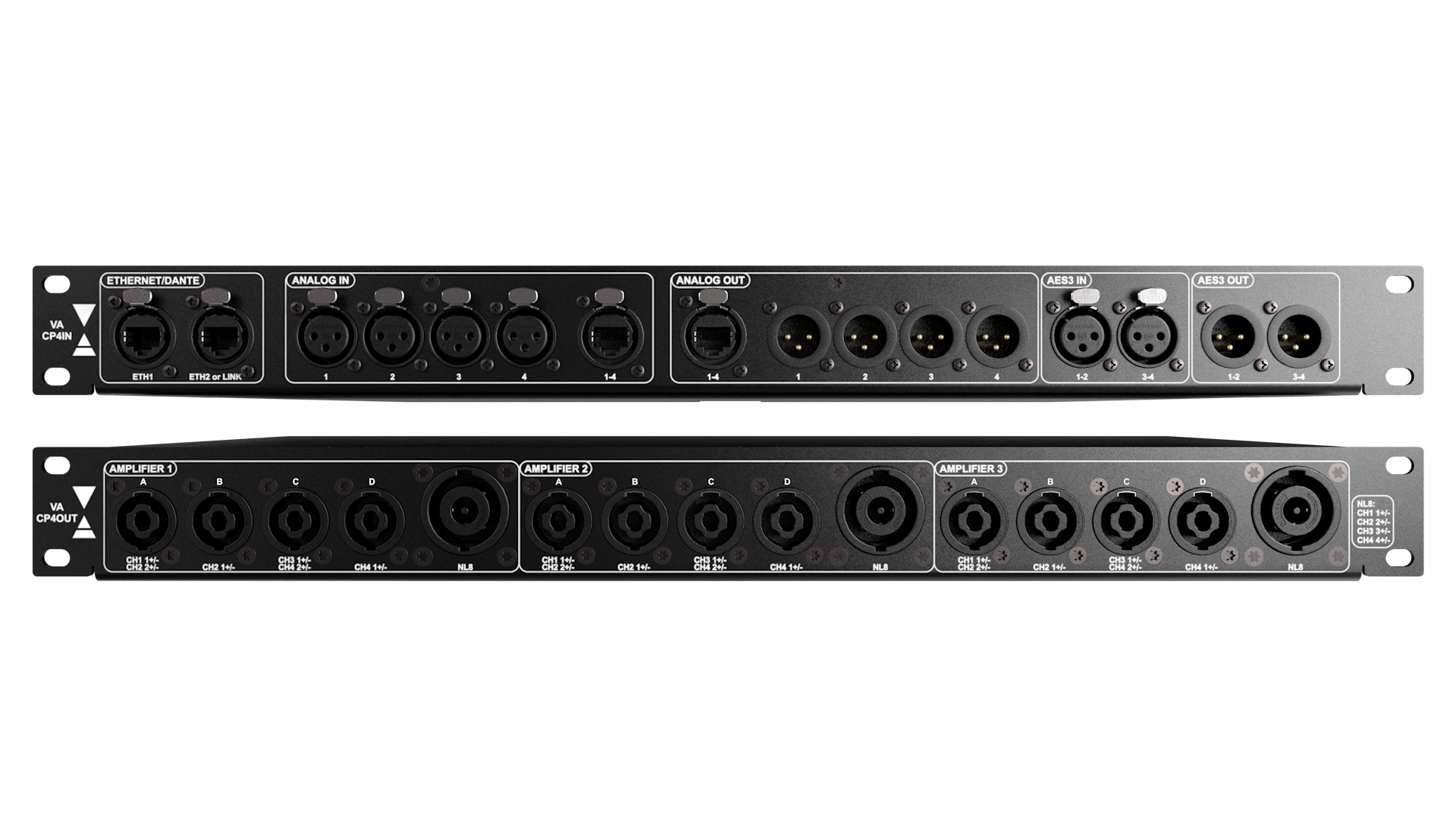 • VA CP4OUT V4: Vorderseite 4x NL4 (2 Buchsen doppelt belegt) + 1x NL8. / Rückseite 2x NL4